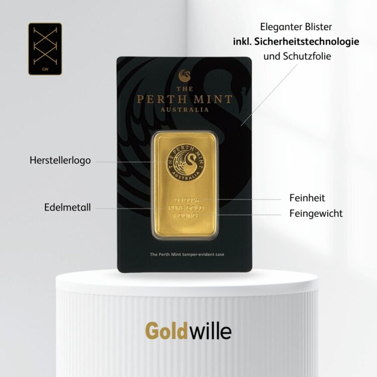 Die Entscheidung, in 1 oz Gold zu investieren, könnte ein kluger erster Schritt sein, um Ihre finanzielle Zukunft zu sichern. Gold hat sich über Jahrtausende als wertbeständiges und krisensicheres Investment bewährt. Ein 1 oz Goldbarren bietet nicht nur eine gute Möglichkeit, in Gold zu investieren, sondern ist auch ein schönes Sammlerstück. Dank der kleinen Größe und der hohen Feinheit eignet er sich außerdem perfekt als Geschenk oder als Einstieg in die Welt der Edelmetalle. Die handliche Verpackung erleichtert das sichere Lagern oder Transportieren des Goldbarrens.