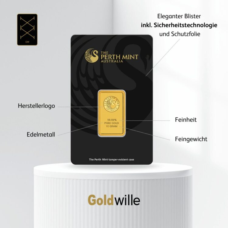 Die Entscheidung, in 10 g Gold zu investieren, könnte ein kluger erster Schritt sein, um Ihre finanzielle Zukunft zu sichern. Gold hat sich über Jahrtausende als wertbeständiges und krisensicheres Investment bewährt. Der 10 g Goldbarren bietet nicht nur eine gute Möglichkeit, in Gold zu investieren, sondern ist auch ein schönes Sammlerstück. Dank der kleinen Größe und der hohen Feinheit eignet er sich außerdem perfekt als Geschenk oder als Einstieg in die Welt der Edelmetalle. Die handliche Verpackung erleichtert das sichere Lagern oder Transportieren des Goldbarrens.
