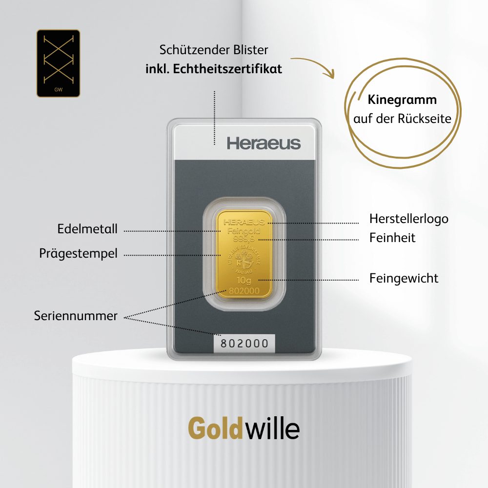 Der 10 g Kinebar Goldbarren von Heraeus: Klasse und Qualität in Gold